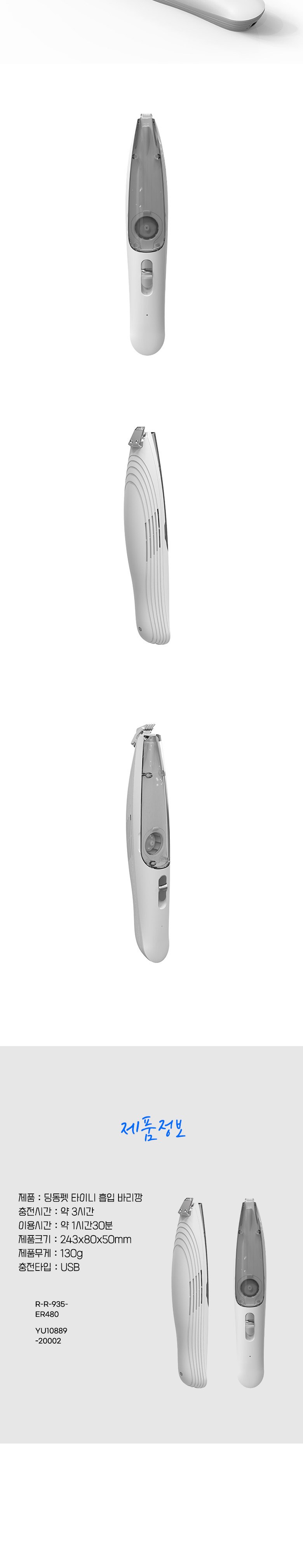 | 품명 및 모델명 | 딩동펫 타이니 흡입 바리깡/ER480 | KC 인증정보 | 본품:R-R-935-ER480,전지:YU10889-20002 |