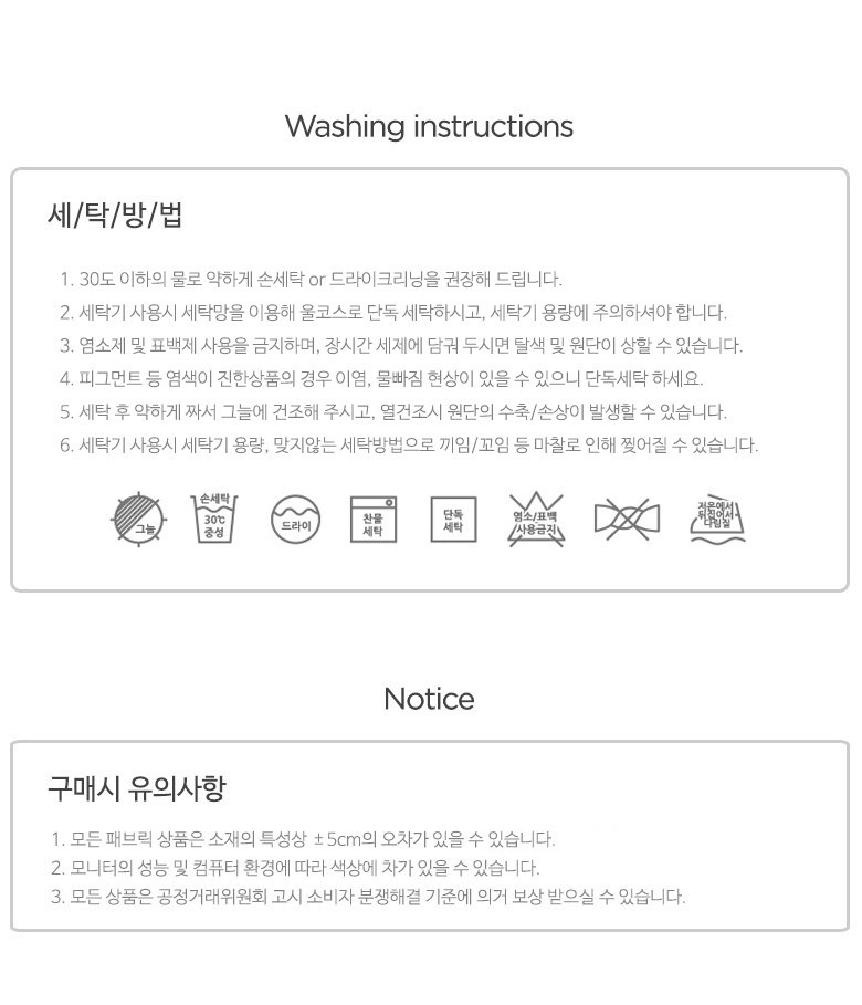 - ㆍ모니터 해상도의 차이로 인해 색상이나 이미지가 실제와 달라, 고객이 단순 변심으로 교환/반품을 무료로 요청하는 경우