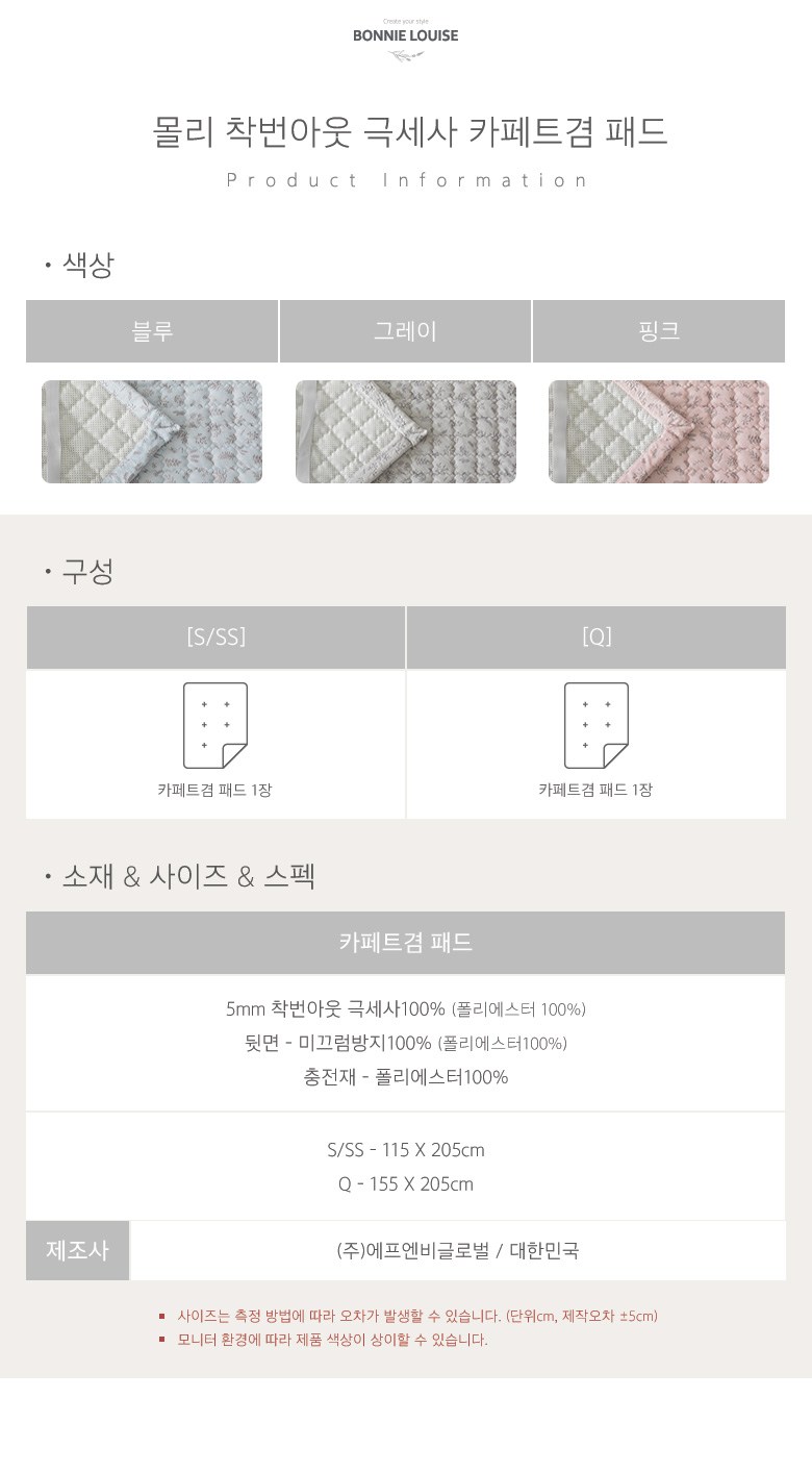 | 치수 | 115cm X 205cm | 제품구성 | 카페트(패드겸용) 1장 |