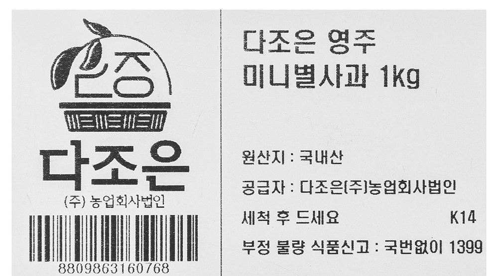 | 품목 또는 명칭 | 다조은 영주 미니별사과 | 포장단위별 내용물의 용량(중량),수량,크기 | 컨텐츠 참조 |