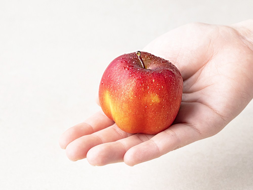 하늘의 별 대신 탐스러운 미니 별사과를 따서 담았어요. 활짝 핀 꽃 모양을 닮은 모습이 눈길을 사로잡지요. 새콤달콤한 풍미와 아삭아삭한 식감이 일품이랍니다. 씹을수록 입안에 짙게 퍼지는 싱그러운 향을 느껴보세요.