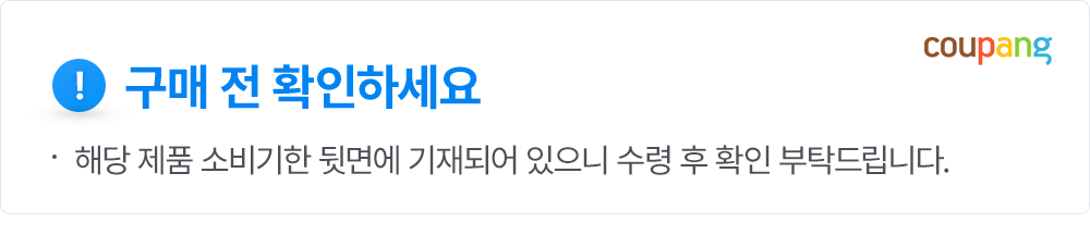 | 교환/반품 신청 기준일 | ㆍ단순변심에 의한 로켓배송 상품의 교환/반품은 제품 수령 후 30일 이내까지, 교환/반품 제한사항에 해당하지 않는 경우에만 가능 (교환/반품 비용 고객부담) ㆍ상품의 내용이 표시·광고의 내용과 다른 경우에는 상품을 수령한 날부터 3개월 이내, 그 사실을 안 날 또는 알 수 있었던 날부터 |
