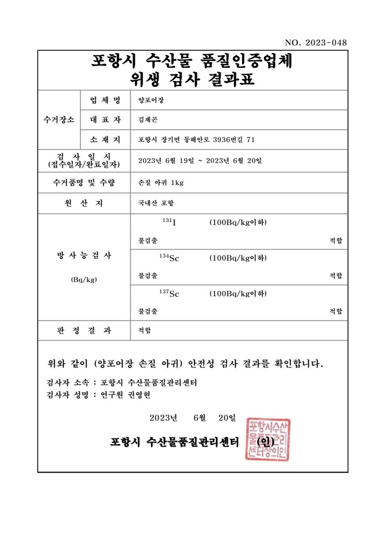 | 생산자(수입자) | 비슈마켓 협력사 파트너 | 원산지 | 포항 국내산 100% |