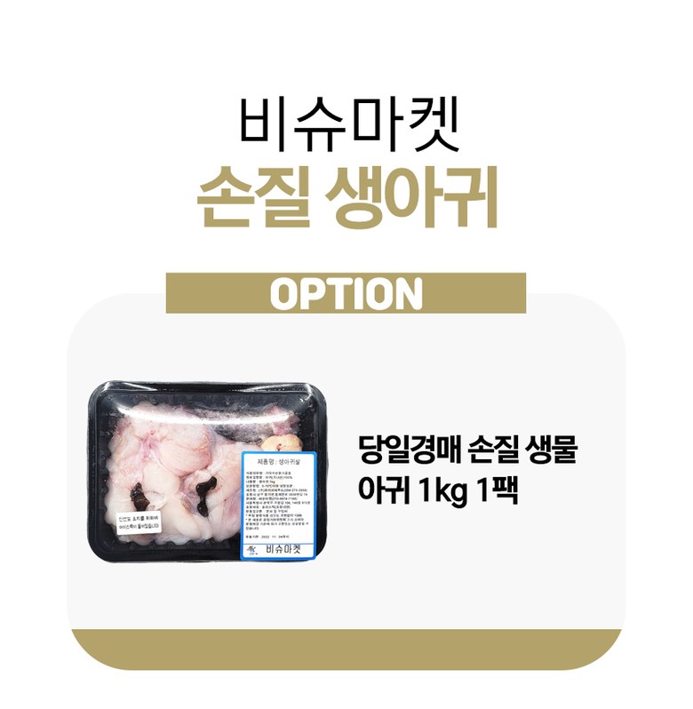 | 품목 또는 명칭 | 당일 경매 생아귀 1kg | 포장단위별 내용물의 용량(중량),수량,크기 | 당일 경매 생아귀 1kg |
