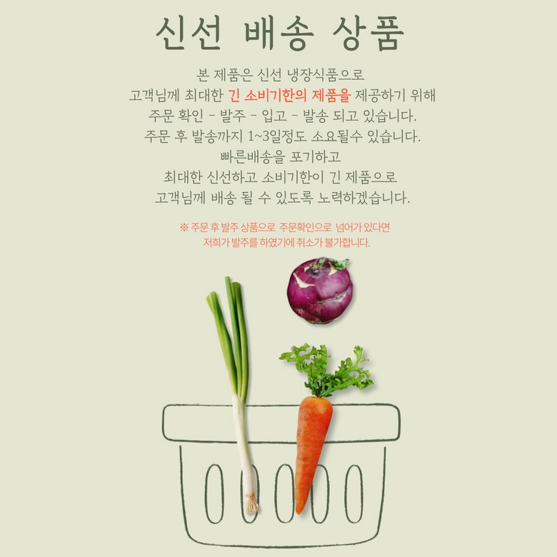 | 배송방법 | 신선/냉장/냉동 | 배송비 | 4,000원 · 도서산간 추가 배송비 - 제주 지역: 3,000원 - 도서산간 지역: 6,000원 |