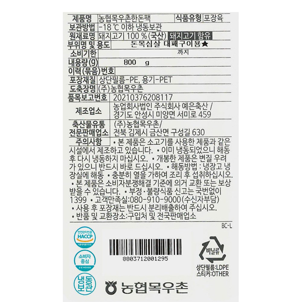 | 소비기한 또는 품질유지기한 | 소비기한(또는 유통기한) : 2027년 01월 16일 이거나 그 이후인 상품 | 세부 품목군별 표시사항 | 축산물 등급표시: 해당없음 / 이력번호 표시유무 - 이력번호 표시제품임 |