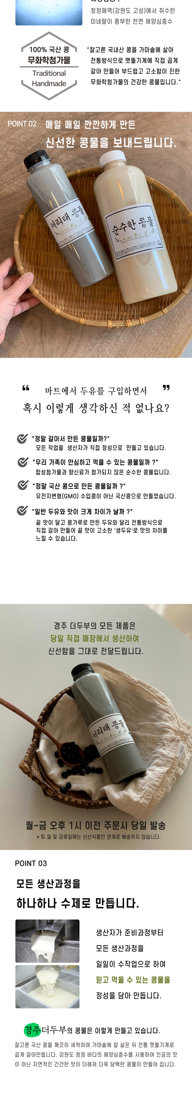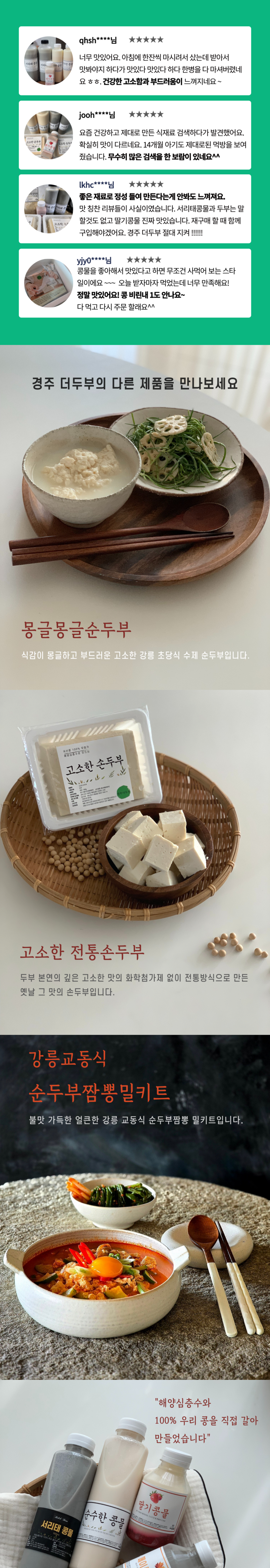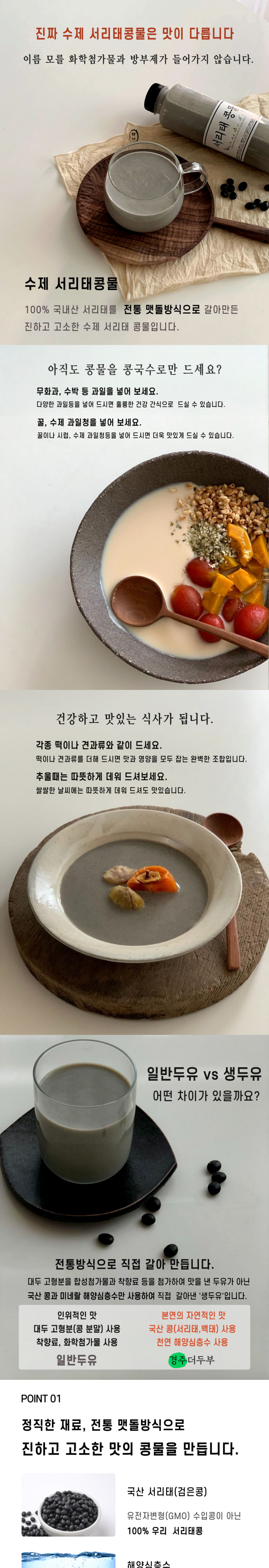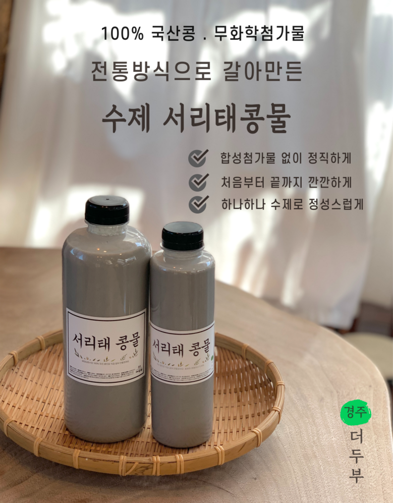 | 제품명 | 경주더두부 국산 해양심층수 서리태 콩물 500ml X 3개 | 식품의 유형 | 두유 |
