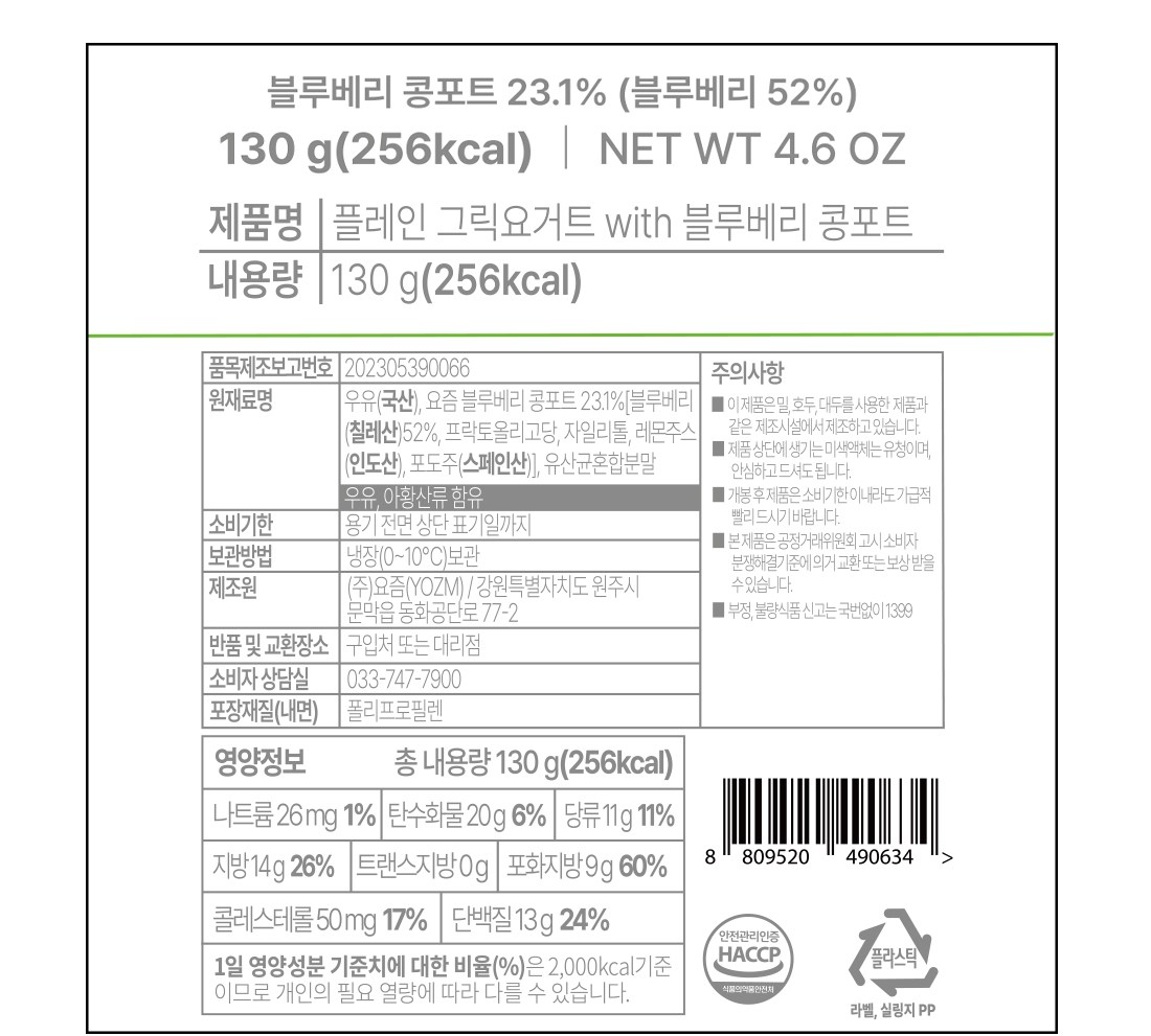 꾸덕꾸덕한 플레인 그릭 요거트와 새콤달콤한 블루베리 콩포트를 함께 즐겨보세요. 골고루 섞어 한 스푼 떠먹으면 조화롭게 어우러지는 맛을 느낄 수 있답니다. 입안 가득 담백하면서도 상큼한 풍미가 퍼질 거예요.