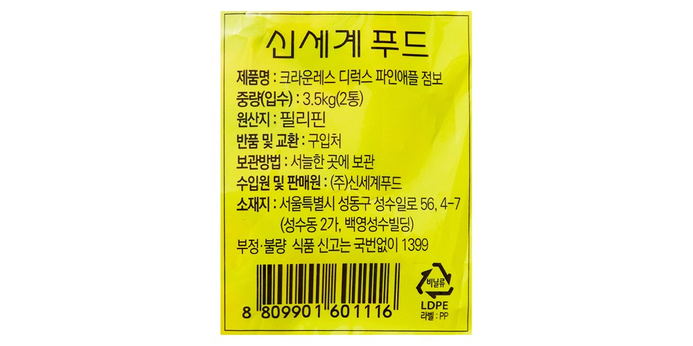 | 품목 또는 명칭 | 컨텐츠 참조 | 포장단위별 내용물의 용량(중량),수량,크기 | 3.5kg x 2개,1개 |