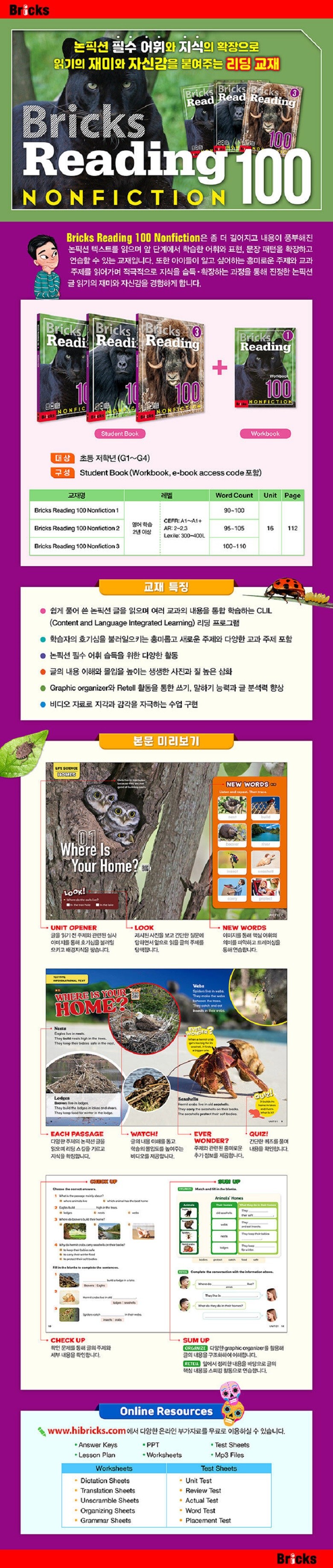 | 도서명 | Bricks Reading(논픽션) 100-1 (SB+WB+E.CODE) | 저자, 출판사 | Macdonald Curtis Glenn,Cheryl Pelteret,Andy Cowle, 사회평론 |