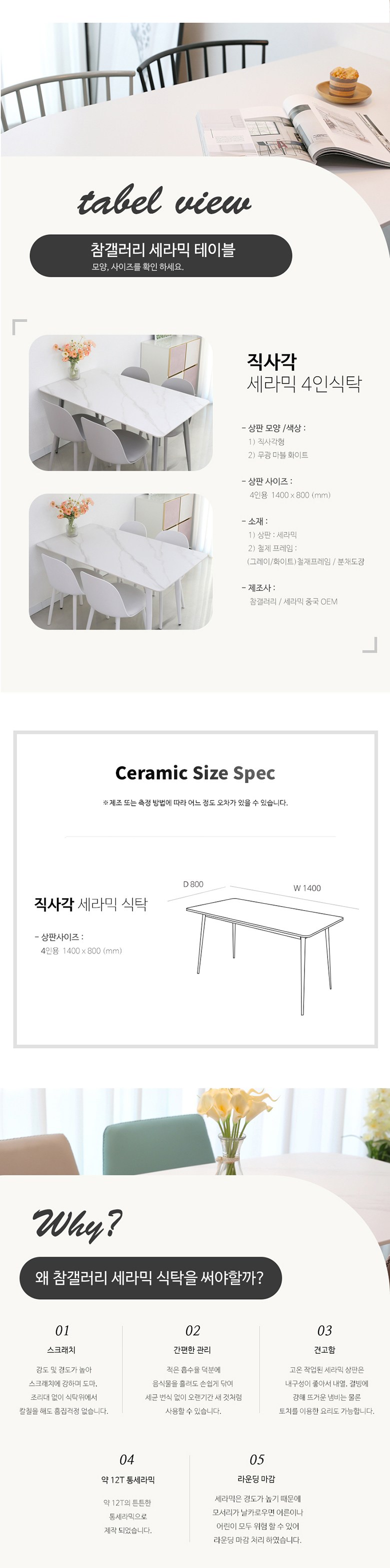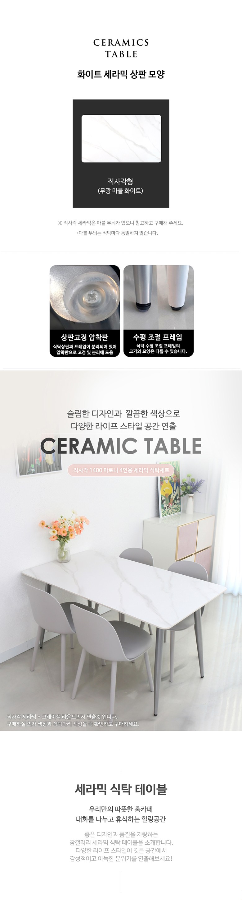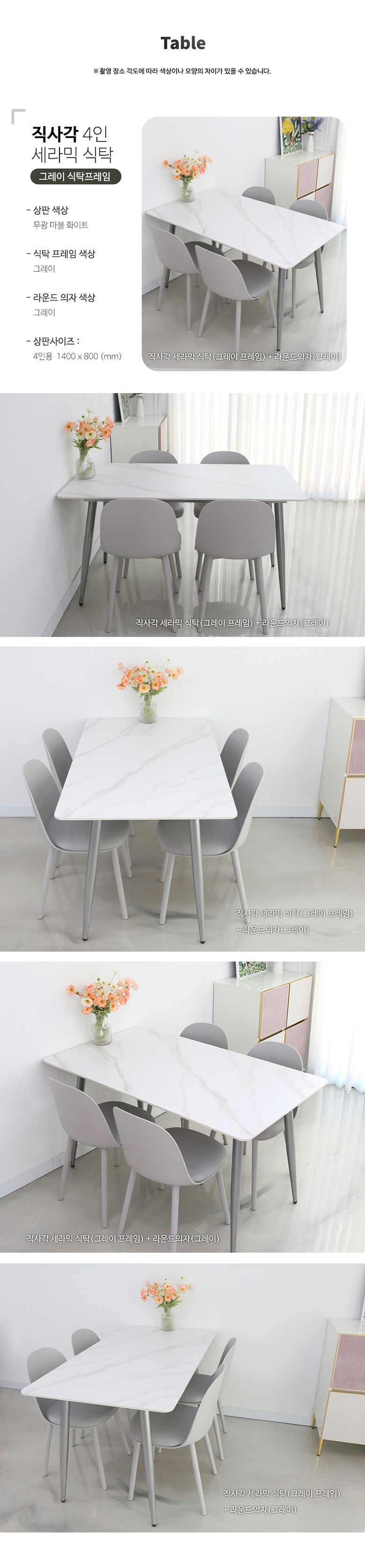 - 사이즈: 식탁(W1400 x D800 mm), 의자(W430 x D480 x H800 mm)