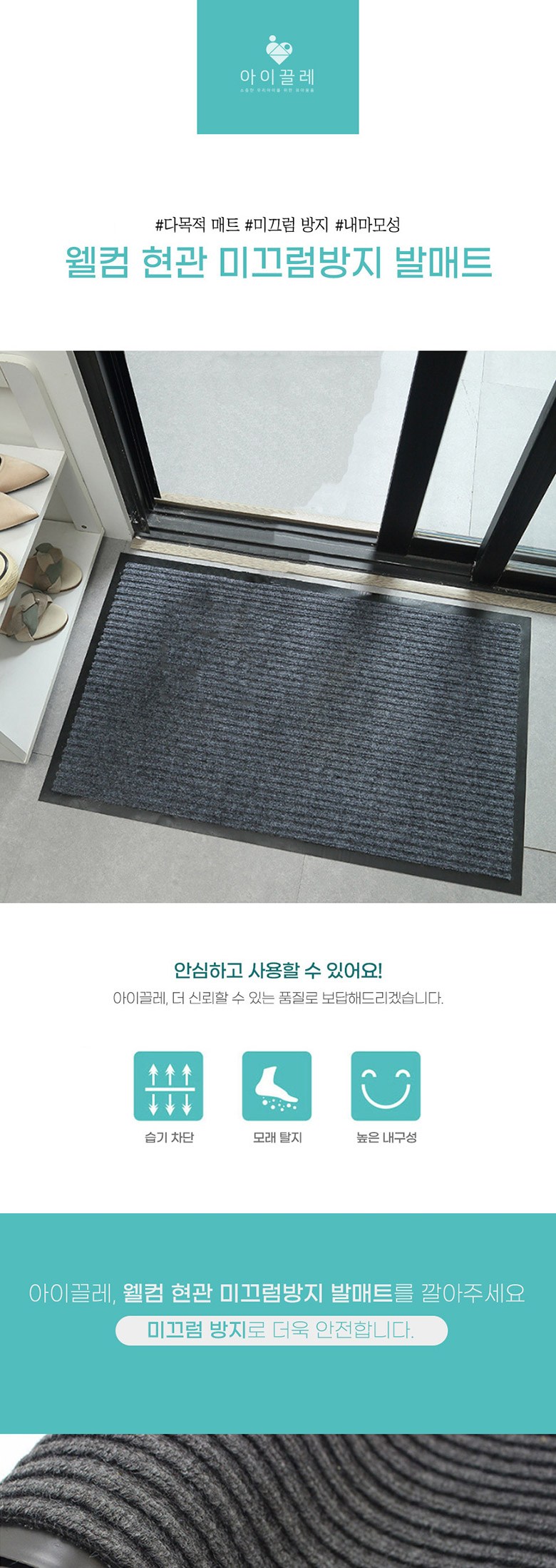 | 품명 및 모델명 | 아이끌레 웰컴 현관 미끄럼방지 발매트 블랙 S | 인증/허가 사항 | 해당없음 |