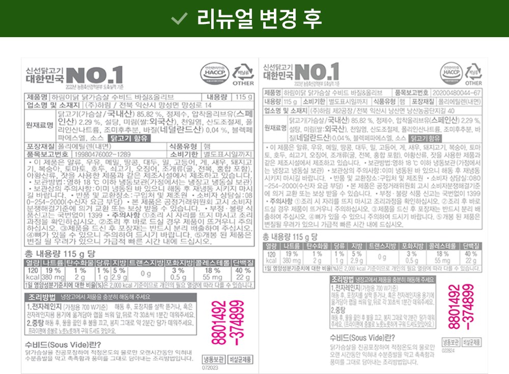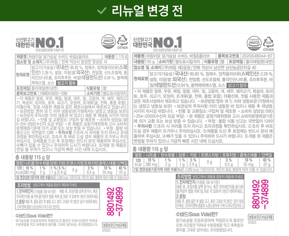 | 제품명 | 하림이닭 닭가슴살 수비드 바질&올리브 | 식품의 유형 | 컨텐츠 참조 |