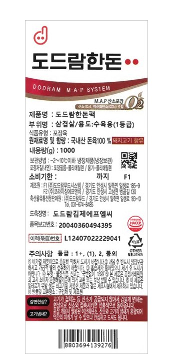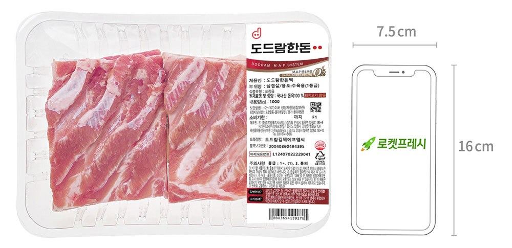 신선도를 유지하기 위해 MAP(Modified Atmospheres Packaging) 기법으로 포장했어요. 용기 내에 산소와 이산화탄소를 채워 고기의 맛과 품질을 유지합니다.