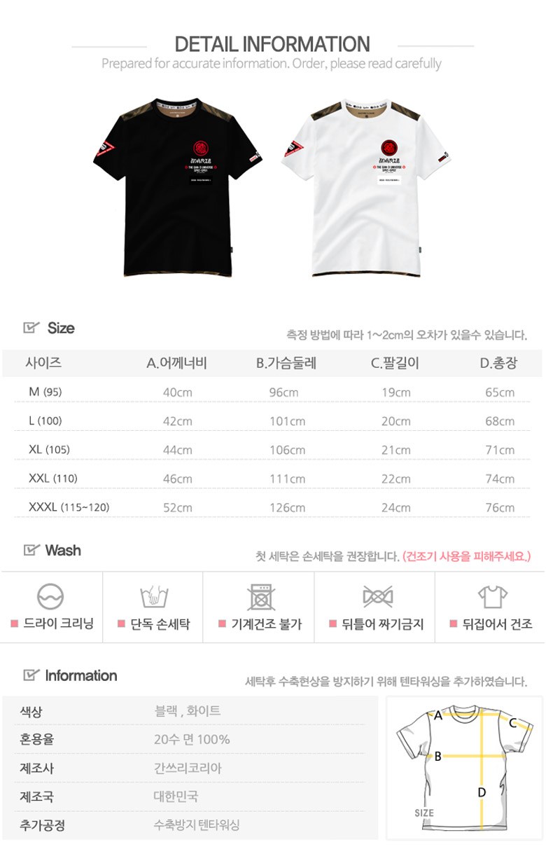 | 치수 | M, L, XL, XXL, XXXL | 제조자(수입자) | 간쓰리코리아 |