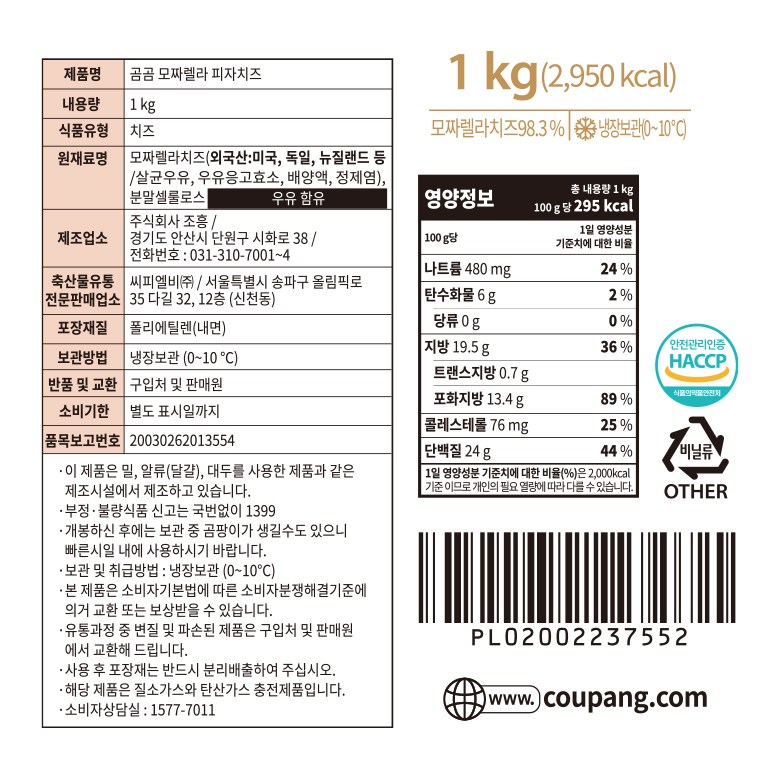 | 포장단위별 내용물의 용량(중량), 수량 | 1kg, 1개 | 원재료명 및 함량 | 컨텐츠 참조 |