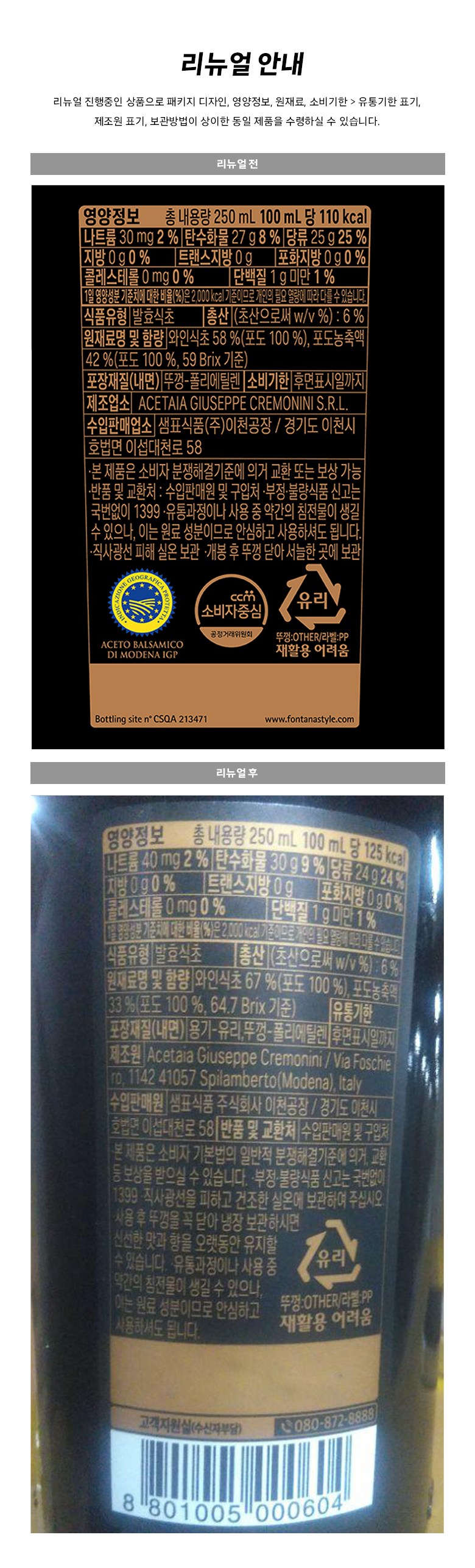 | 제품명 | 폰타나 모데나 발사믹 식초 | 식품의 유형 | 컨텐츠 참조 |