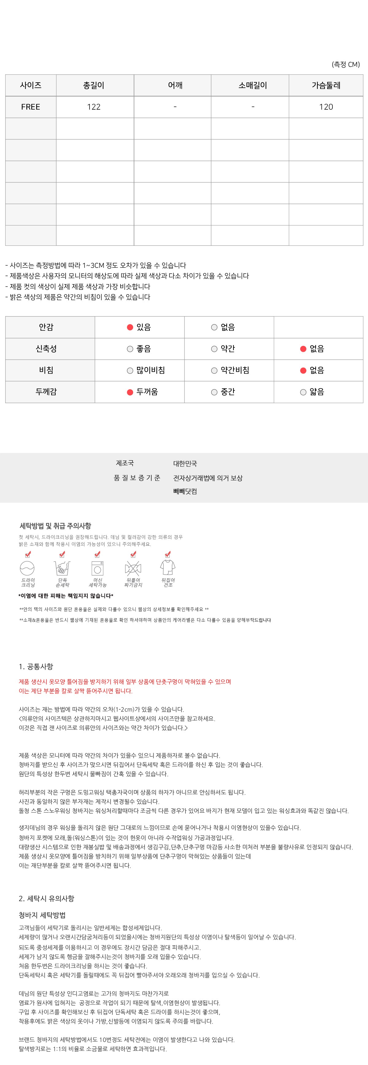 | 제조국 | 한국 | 세탁방법 및 취급시 주의사항 | 컨텐츠참조 |