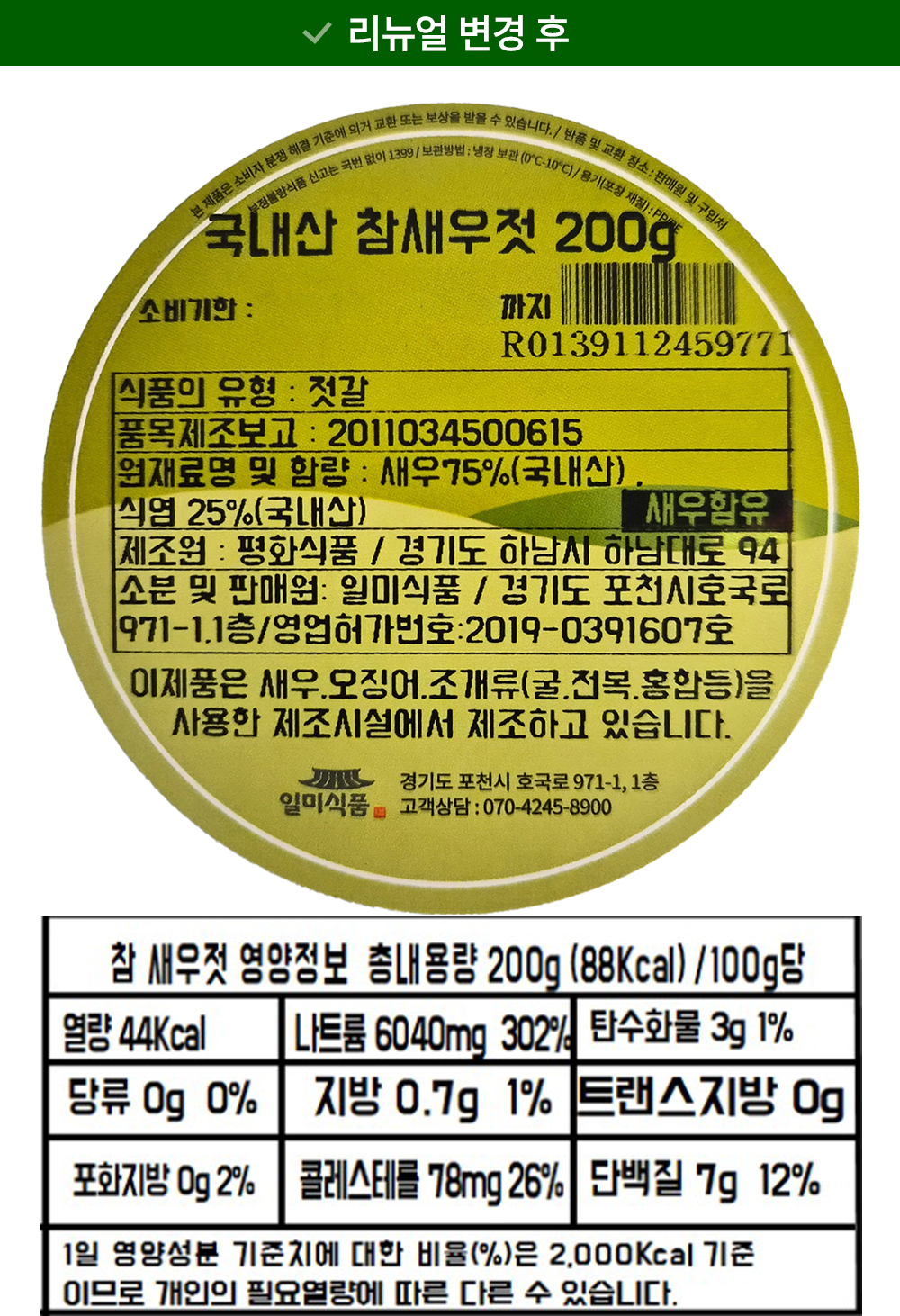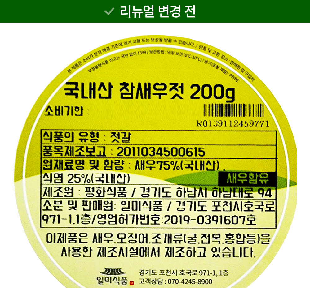 | 제품명 | 새우젓 | 식품의 유형 | 컨텐츠 참조 |