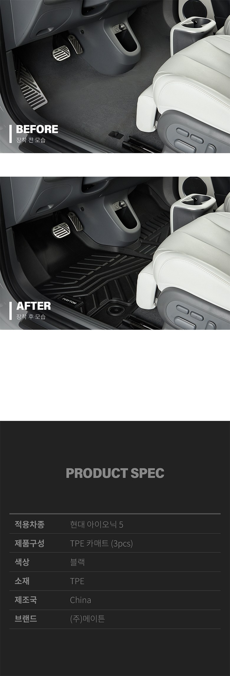| 품명 및 모델명 | 메이튼 아이오닉5 튜닝 카매트 TPE 1열+2열 풀세트 | 동일모델 출시년월 | 업체미제공 |