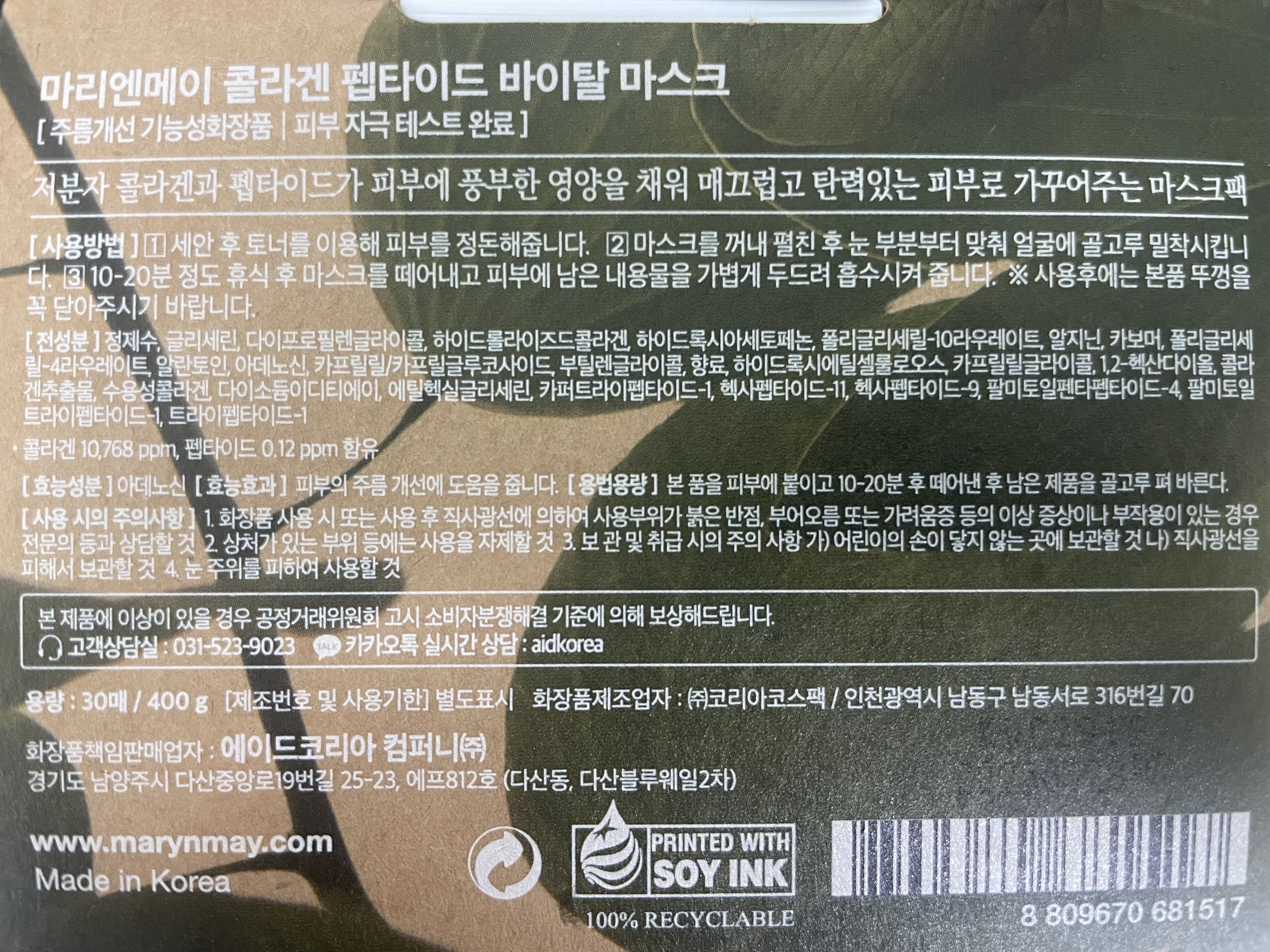 - 주성분: 콜라겐