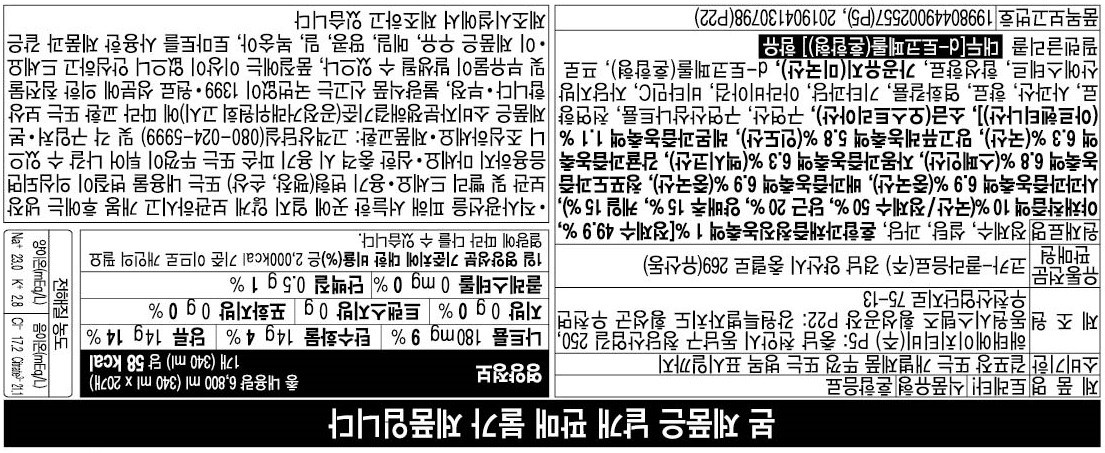 | 포장단위별 내용물의 용량(중량), 수량 | 340ml, 20개 | 원재료명 및 함량 | 컨텐츠 참조 |