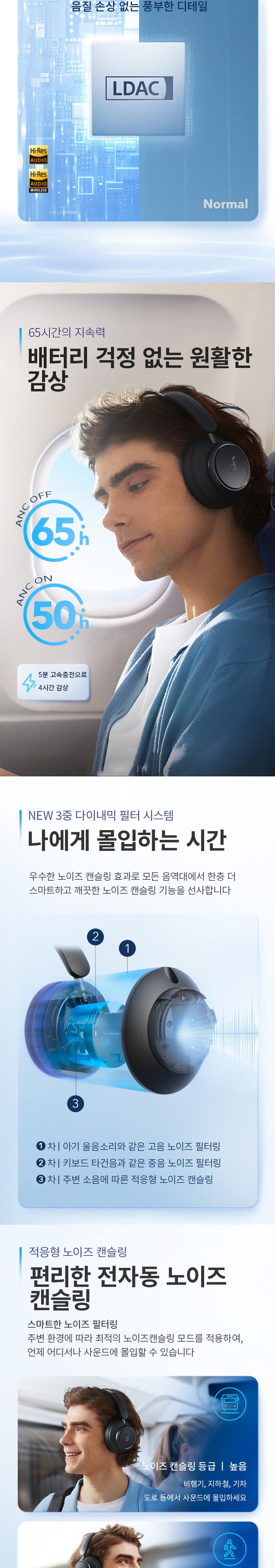 - 노이즈캔슬링 여부: 패시브노이즈캔슬링(PNC)