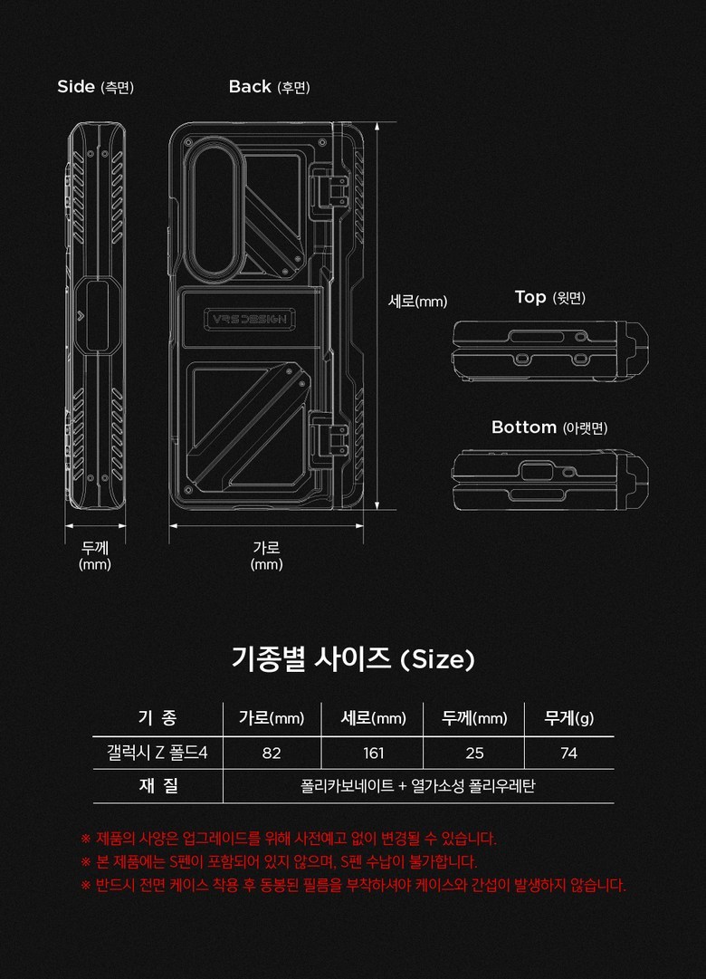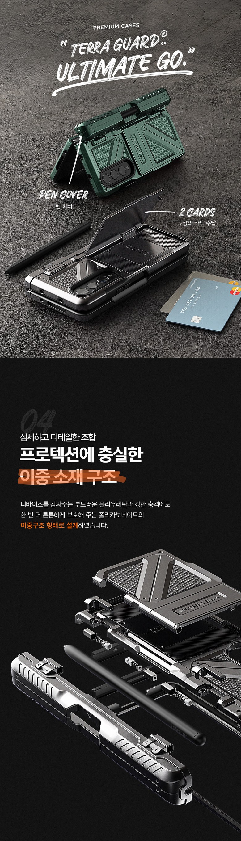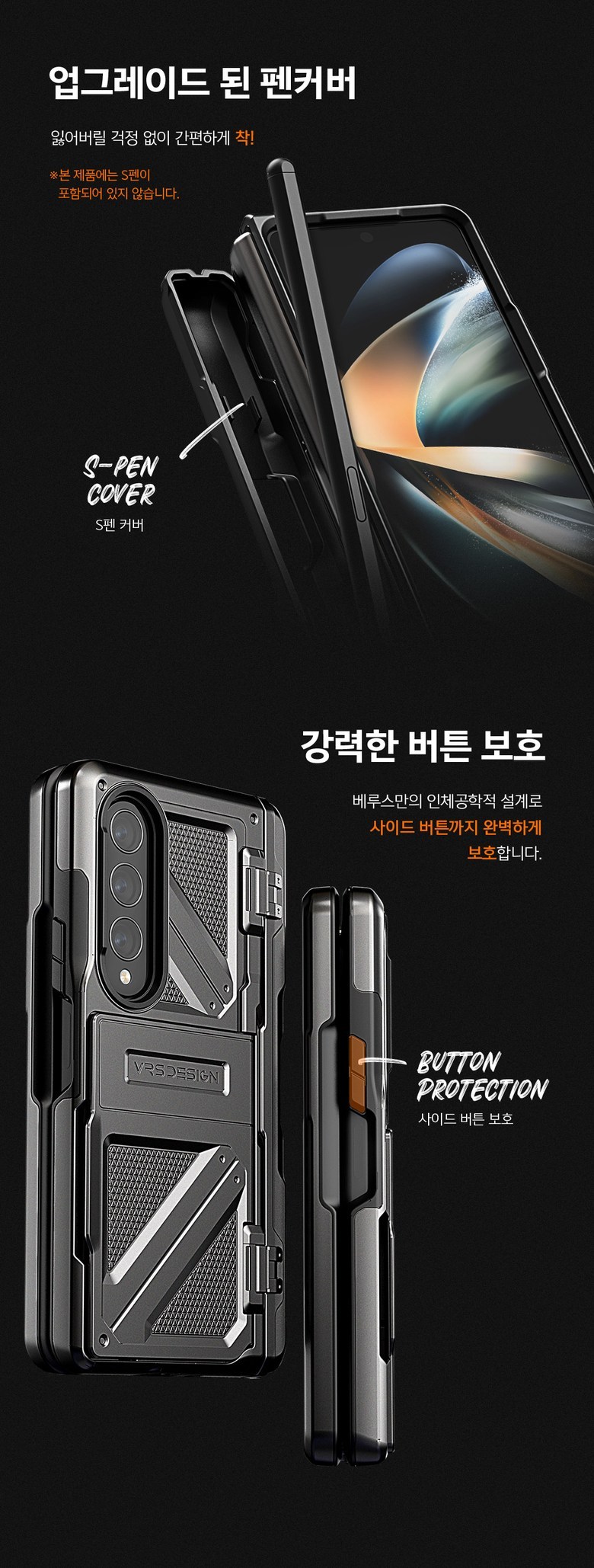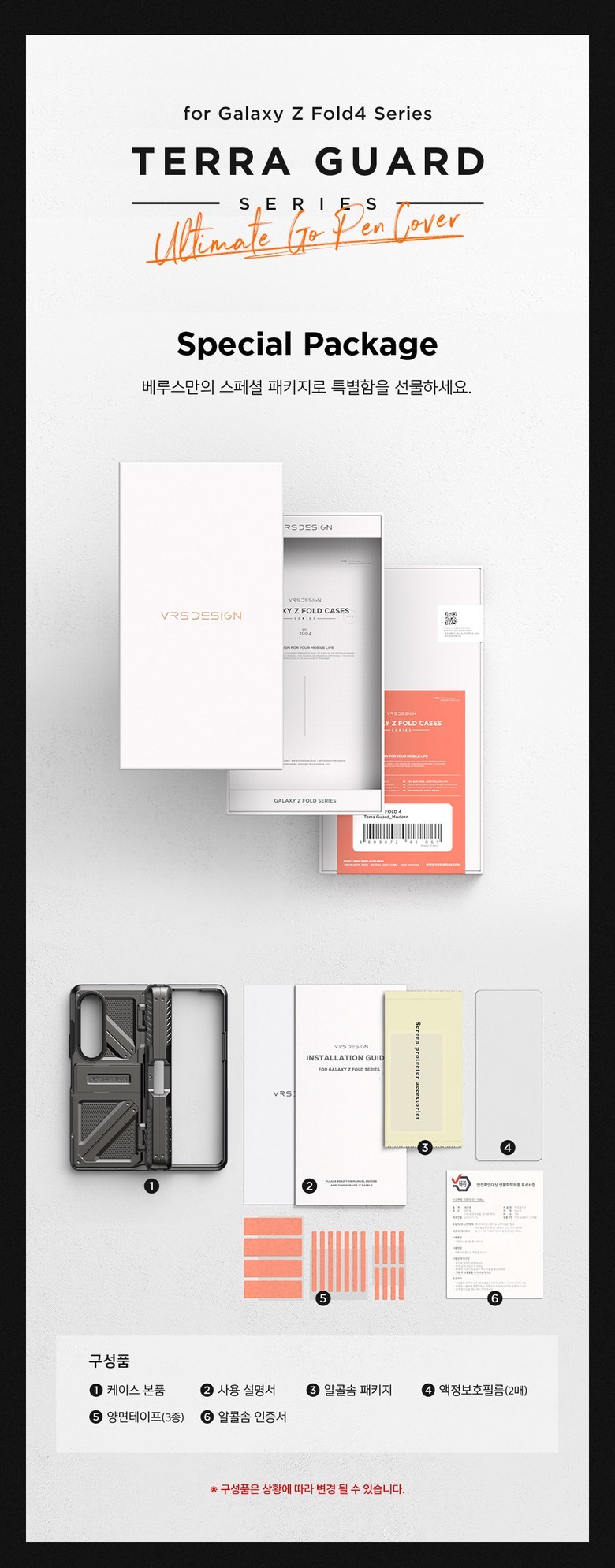| 품명 및 모델명 | 베루스 갤럭시Z폴드4 케이스 힌지 보호 S펜 카드 수납 풀커버 휴대폰 케이스 테라가드 얼티메이트 고 펜커버 + 전면 액정보호필름 2매 | 인증/허가 사항 | 본품 : 해당없음 / 알콜클리너 : CB20-01-1064 |