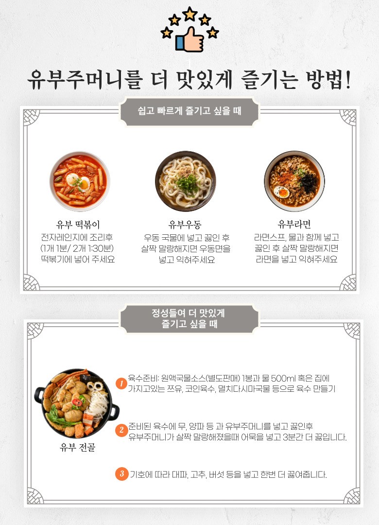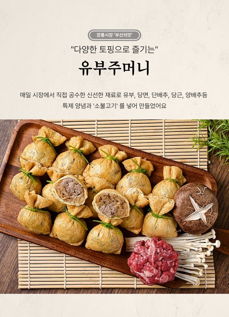 | 포장단위별 내용물의 용량(중량), 수량 | 1봉 약250g | 원재료명 및 함량 | 유부28%(대두95.3,미국산), 언양소불고기20%(미국산), 당면28%(수입산), 당근 3%(국산), 단배추6%, 양배추3%, 간장3%, 소금1%, 설탕1%, 참나물1% |