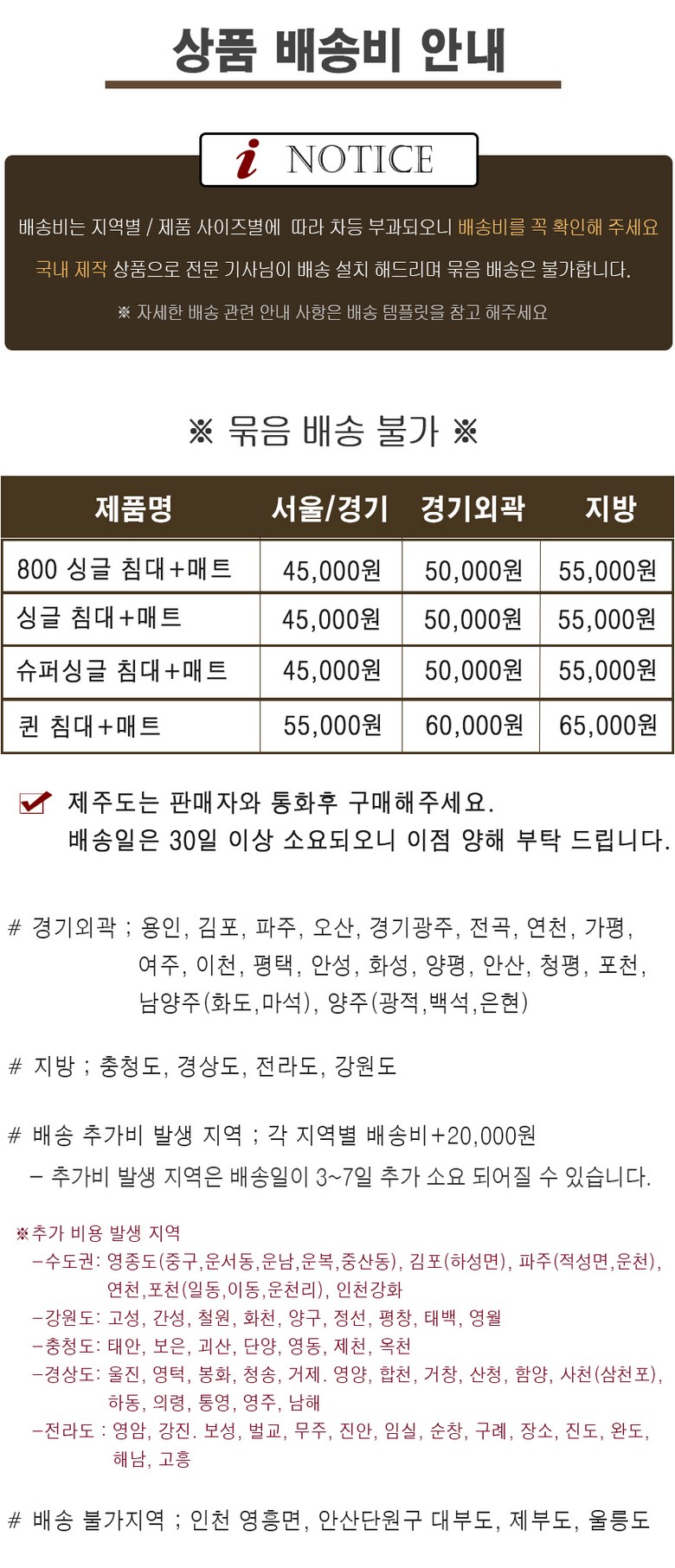| 배송방법 | 업체직송 | 배송비 | 착불배송(상품별 배송비, 배송가능지역은 상세페이지 참조) - 도서산간 지역 배송불가 |