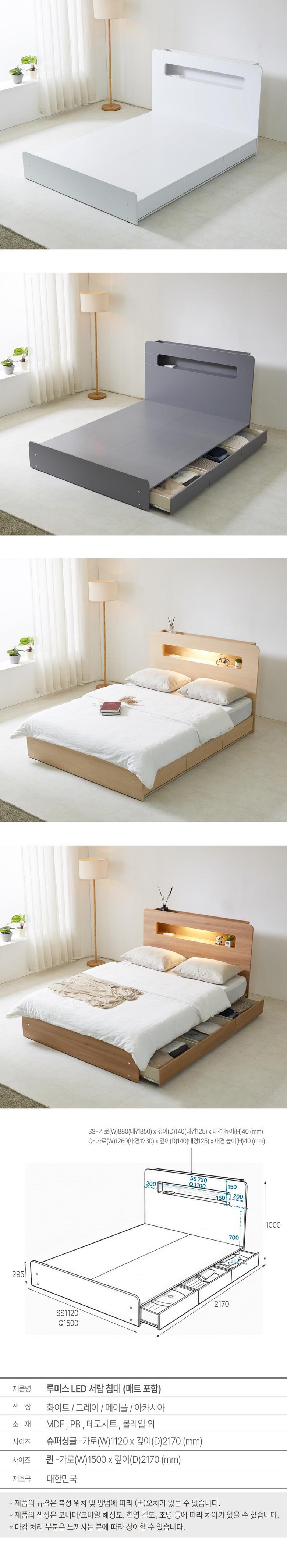 | 품명 | 루미스 LED조명 침대 3단 서랍침대 + 본넬스프링매트리스 | KC 인증정보 | 상품 상세페이지 참조 |