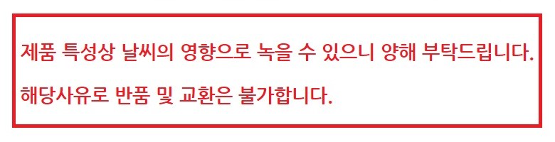 - ㆍ모니터 해상도의 차이로 인해 색상이나 이미지가 실제와 달라, 고객이 단순 변심으로 교환/반품을 무료로 요청하는 경우