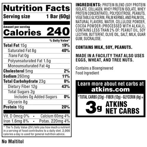 앳킨스 프로틴 밀 바 초콜릿 피넛 버터 8개입
