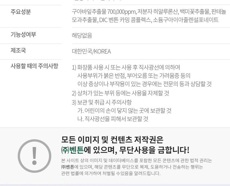| 용량(중량) | 컨텐츠 참조 | 제품 주요 사양 | 모든 피부용 |