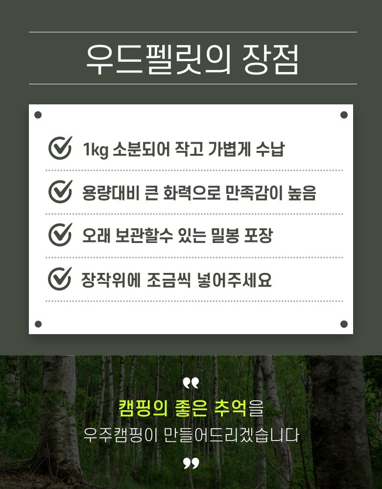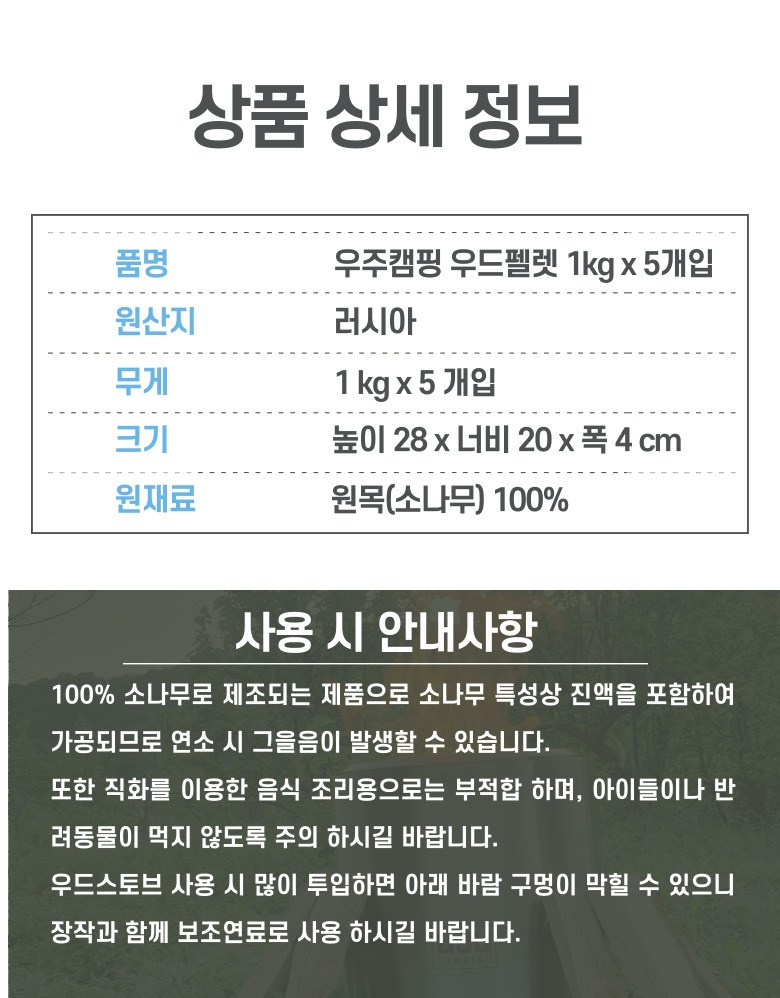 | 품명 및 모델명 | 우주캠핑 우드펠렛 | 인증/허가 사항 | 해당없음 |