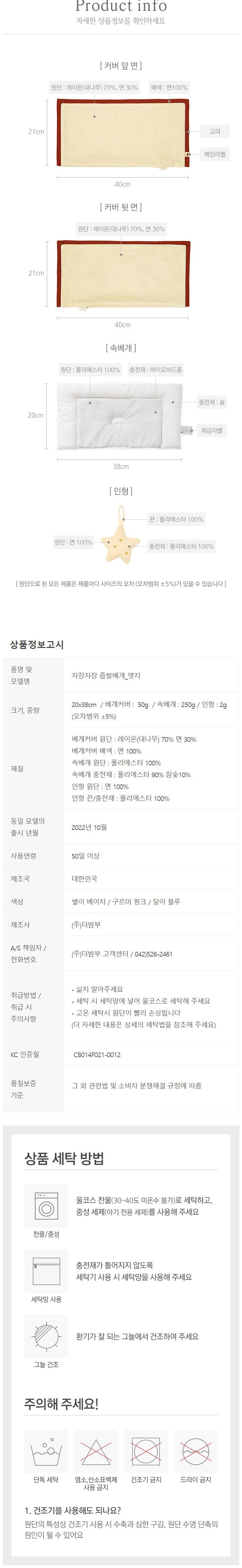 | 품명 및 모델명 | 밤부베베 아동용 자장자장 좁쌀베개 엣지 + 인형 | KC 인증정보 | CB014F021-0012 |