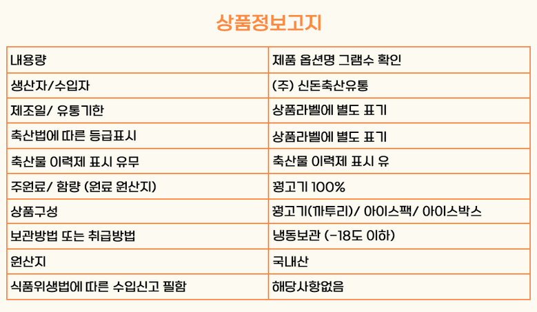 | 생산자(수입자) | (주)신돈축산유통 | 원산지 | 국내산 |
