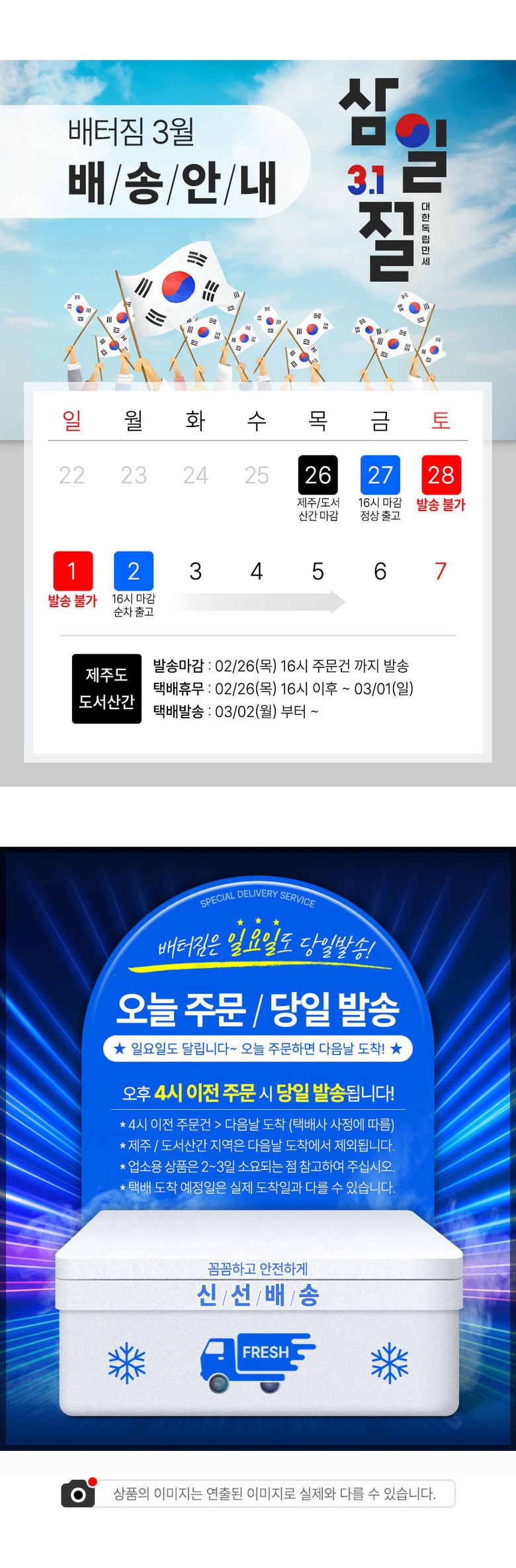 - ㆍ모니터 해상도의 차이로 인해 색상이나 이미지가 실제와 달라, 고객이 단순 변심으로 교환/반품을 무료로 요청하는 경우