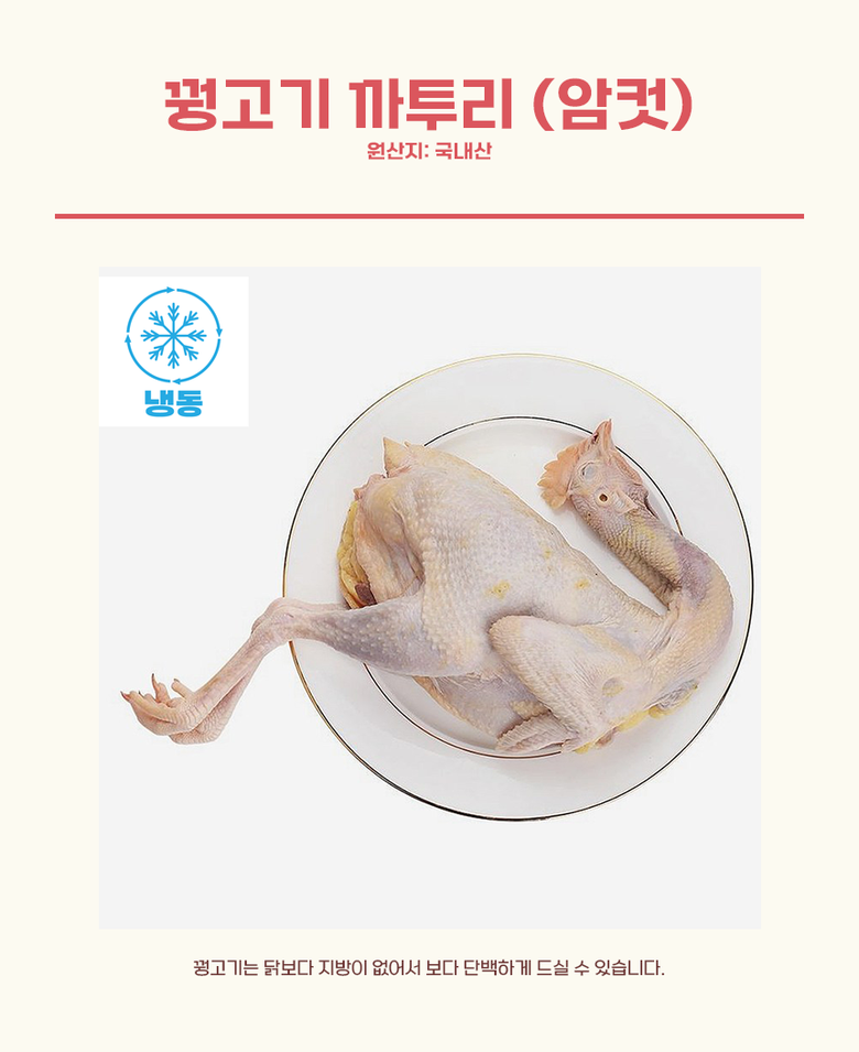 | 품목 또는 명칭 | 꿩고기 | 포장단위별 내용물의 용량(중량),수량,크기 | 850g내외 |