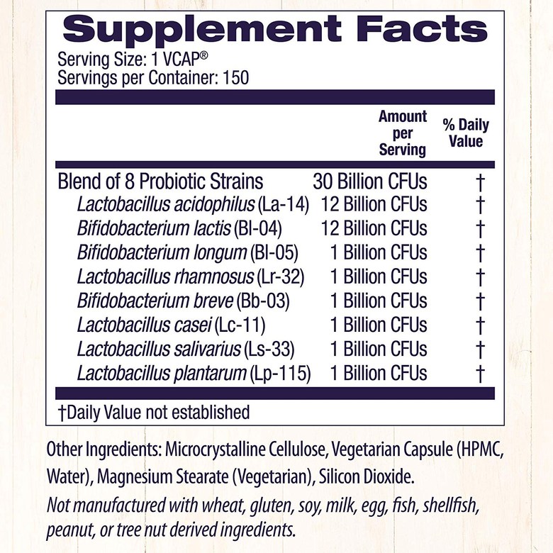 8종의 유익균과 300억 개의 CFU가 함유된 식이 보충제입니다. 프로바이오틱스가 함유되어 있습니다.
