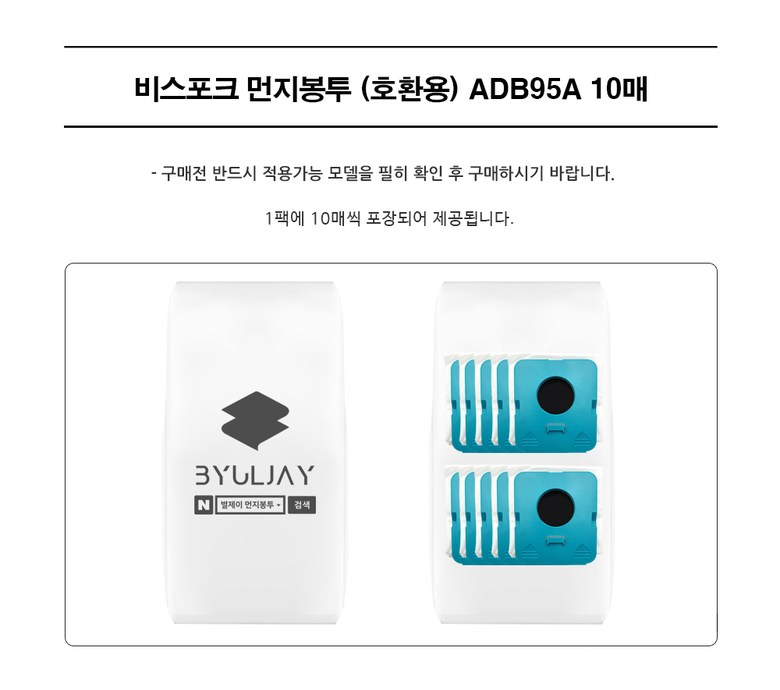 | 품명 및 모델명 | 별제이 비스포크 제트 호환 먼지 봉투, 10매입 | 인증/허가 사항 | 해당없음 |