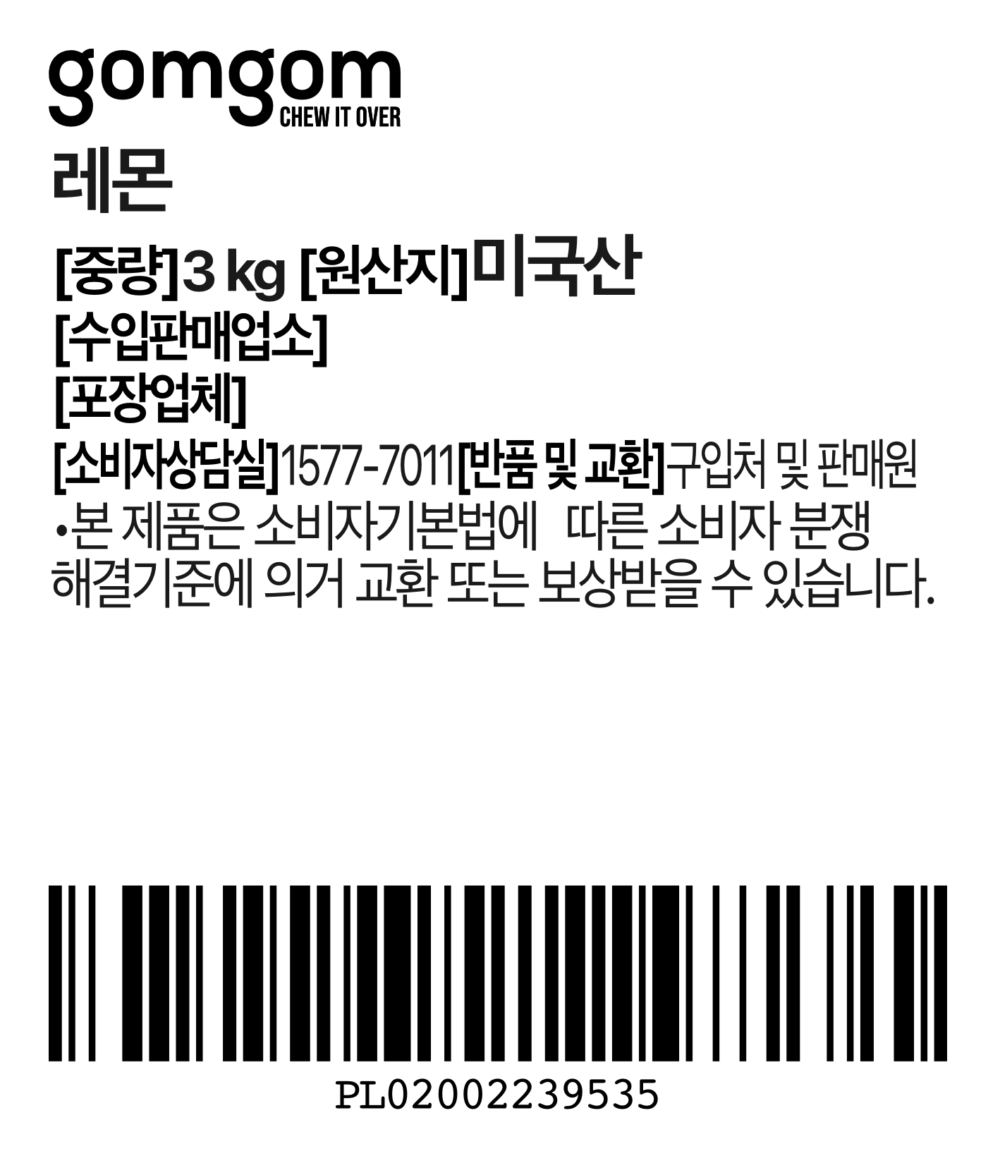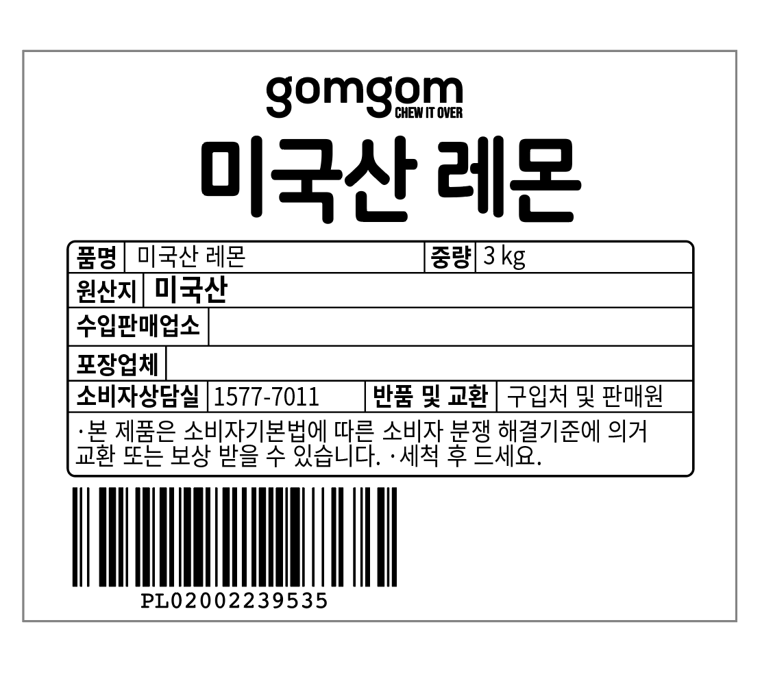 | 품목 또는 명칭 | 미국산 레몬 | 포장단위별 내용물의 용량(중량),수량,크기 | 3kg |