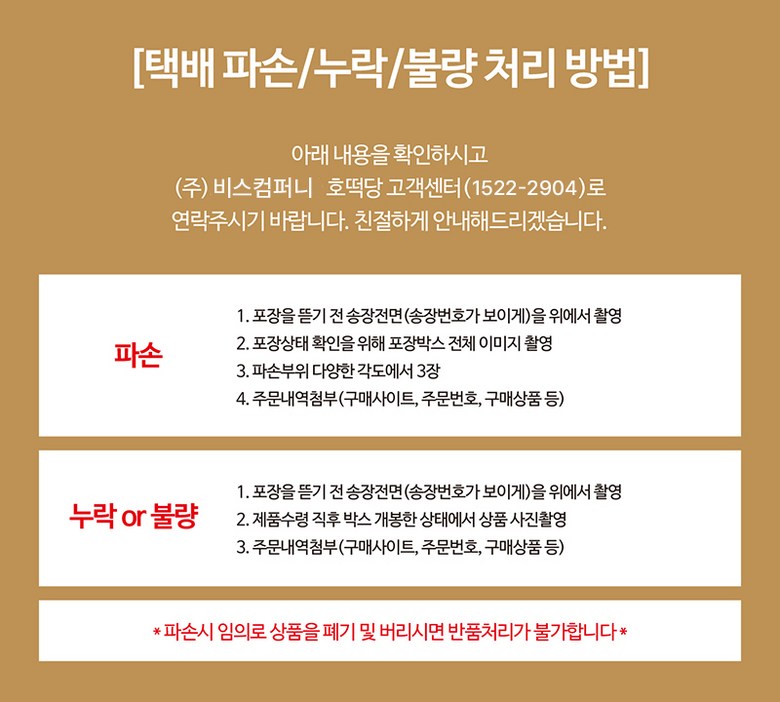 - ㆍ모니터 해상도의 차이로 인해 색상이나 이미지가 실제와 달라, 고객이 단순 변심으로 교환/반품을 무료로 요청하는 경우