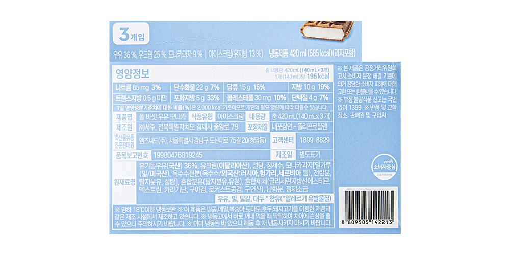 | 포장단위별 내용물의 용량(중량), 수량 | 420ml x 4개,1개 | 원재료명 및 함량 | 컨텐츠 참조 |