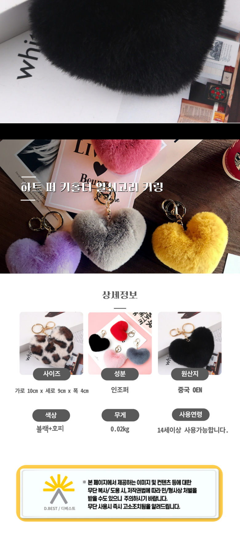 하트 퍼 키홀더 열쇠고리 키링 1+1