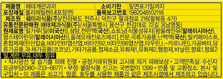 | 생산자 및 소재지 | 컨텐츠 참조 | 제조연월일, 소비기한 또는 품질유지기한 | 소비기한(또는 유통기한) : 2026년 05월 07일 이거나 그 이후인 상품 제조년월일 : 2025년 02월 25일 이후인 제조상품 |