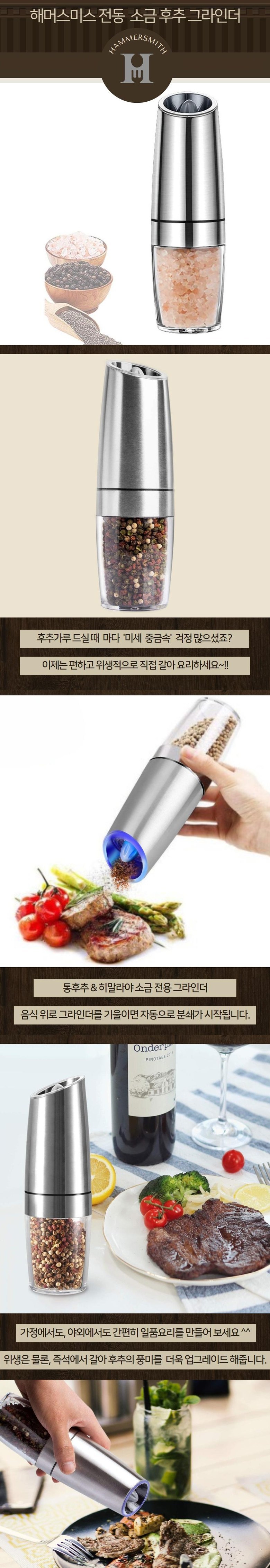 해머스미스 후추 그라인더 전동 통후추 히말라야 소금 그라인더