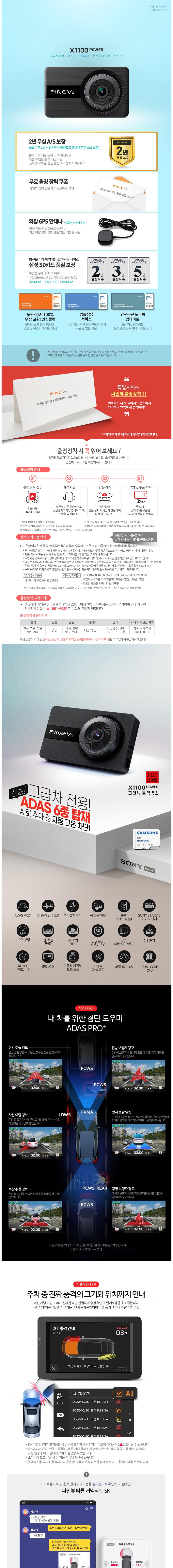 | 품명 및 모델명 | 파인뷰 전후방 FHD 2채널 블랙박스 X1100 POWER + 출장 장착 쿠폰 + GPS 세트 / X1100 POWER | 동일모델 출시년월 | 업체미제공 |