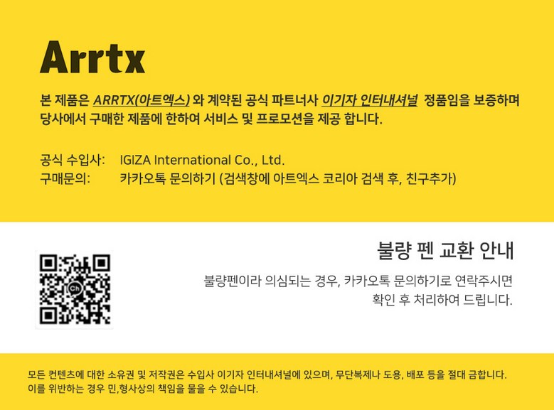 | 제조국(원산지) | 중국 | 제조자(수입자) | 제조자 Shenzhen Arrtx Tech Co., Ltd. / 수입자 (주)아트엑스코리아 |