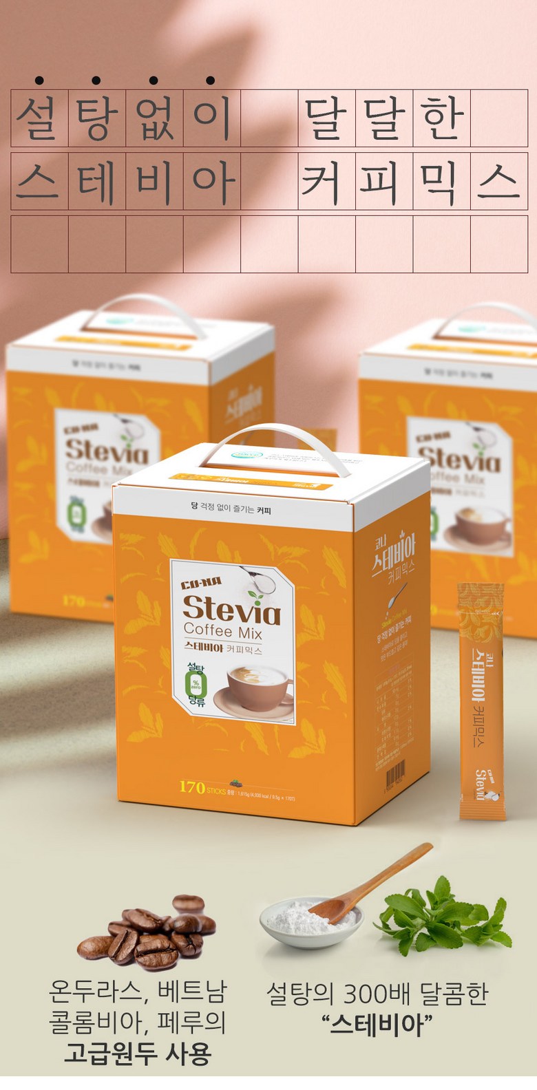 (무료배송)모카씨엔티/나만의 작은 카페/코나 스테비아 커피믹스 170T+30T (200티)